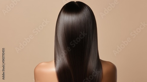 Stunning long hair shines with radiance against a soft, neutral background showcasing elegance and beauty at its finest