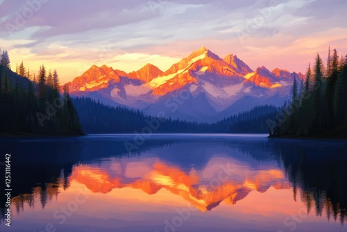 Stunning mountainous landscape at sunset with clear reflections on water.