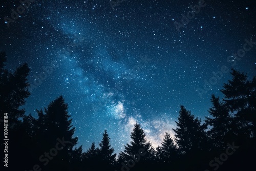 Stunning Night Sky with Stars Over Tree Silhouette