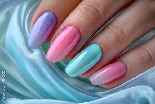 Stunning Pastel Ombre Nail Art on Elegant Silk Background