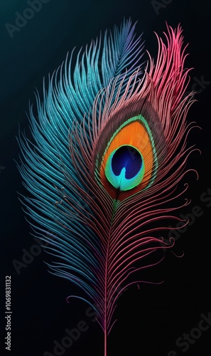 Stunning peacock feather illustration featuring vibrant colors and intricate patterns, perfect for use in fashion, beauty, or artistic projects.