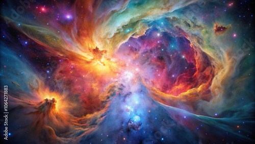 Stunning photo of the Orion Nebula with vibrant colors and intricate details, astronomy, star birth, nebula