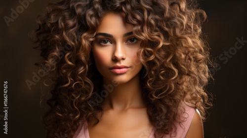 Stunning Portrait of a Woman with Long, Curly Brown Hair
