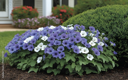 Stunning Purple and White Petunia Flowerbed Landscape