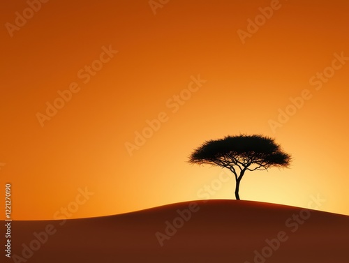 Stunning silhouette of a lone tree against a vibrant orange sunset sky, evoking tranquility and natural beauty.