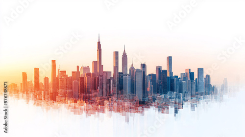 Stunning skyline view at sunset, showcasing tall buildings and vibrant colors in a dynamic urban landscape.