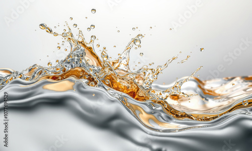 stunning splash of liquid gold and silver creates mesmerizing visual effect, showcasing beauty of fluid dynamics and color contrast