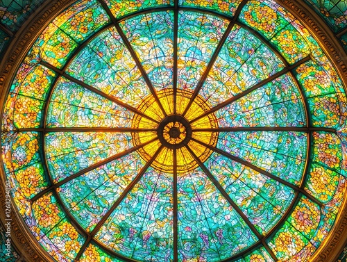Stunning Stained Glass Dome Ceiling Art Deco Design