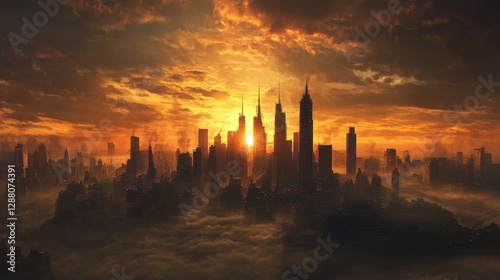 Stunning sunset over a city skyline with clouds