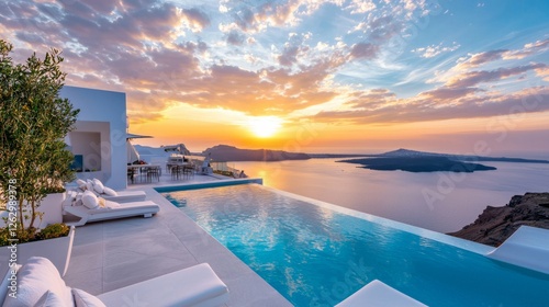 Stunning Sunset Over Infinity Pool with Ocean and Sky View