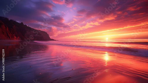Stunning Sunset Over the Ocean Beach