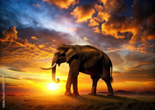Stunning sunset silhouette: an Indian elephant's majestic form, a powerful wildlife image.