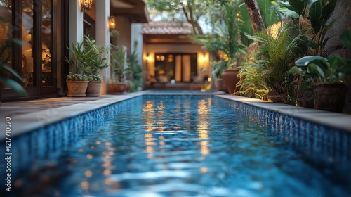 Stunning sunset view from luxury villa with infinity pool overlooking the coastline