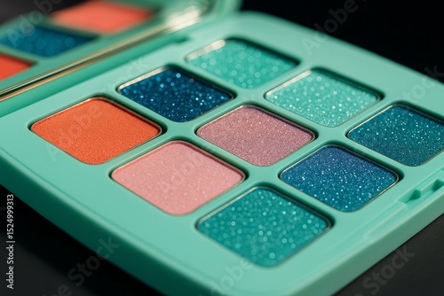 Stunning Teal Green Eyeshadow Palette Makeup Cosmetic Product Vibrant Shimmery Glittery Powder Shades Beauty Fashion Colorful Trendy Premium Quality Professional Artist Look Pink Blue Aqua Girl Style