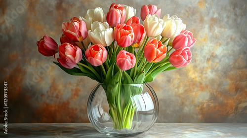 Stunning Tulips in Glass Vase, Vibrant Colors