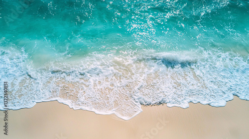 Stunning turquoise ocean waves crashing on white sandy beach sea sky sun foam blue calm water coast