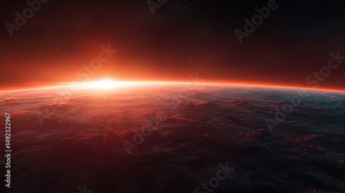 Stunning View of Earth from Space at Dawn with Beautiful Horizon and Vibrant Color Gradients