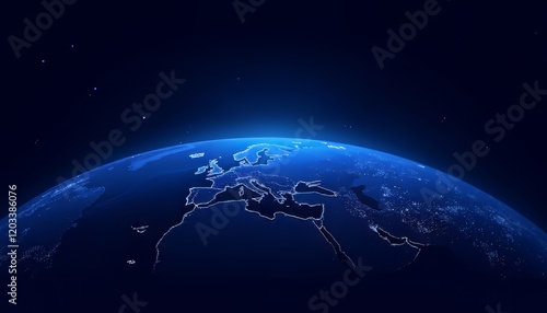 Stunning view of Earth from space, highlighting Europe with vibrant city lights.
