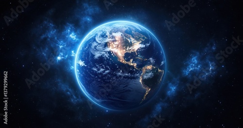 Stunning View of Earth from Space with City Lights and Ethereal Glow for Earth Hour March 2025