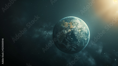 Stunning view of Earth from space with sunbeam, depicting our planet's beauty against the backdrop of the cosmos.