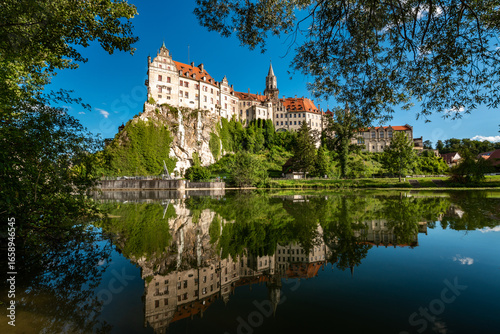 Stunning View of Schloss Sigmaringen Castle Reflected in Water