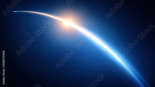 Stunning view of sunrise or sunset over horizon, showcasing vibrant gradient of blue and orange hues. image captures beauty of Earth curvature and vastness of space, evoking sense of wonder