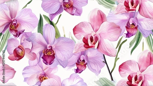 Stunning watercolor Pink Orchids for National Orchid Day or International Orchid Day: Elegant and Vibrant Flowers in a Natural Setting