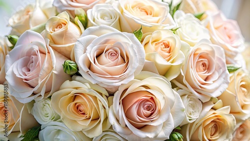 Stunning White & Pink Rose Wedding Bouquet Closeup - Elegant Bridal Flowers Photography