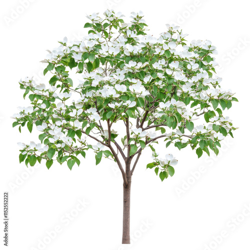 Stunning White Dogwood Tree in Full Bloom, Isolated on Black Background, Springtime Beauty, Nature Photography