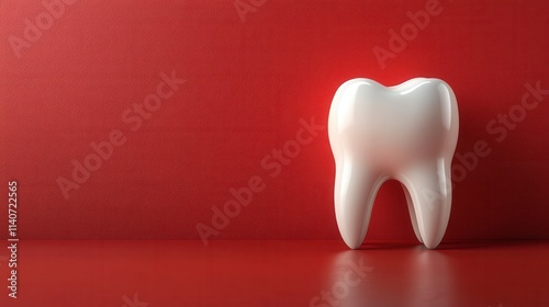 Stunning White Tooth on Red Background: A Symbol of Dental Health and Care