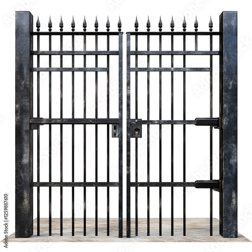 Sturdy Metal Prison Gate Isolated on Clean White Background