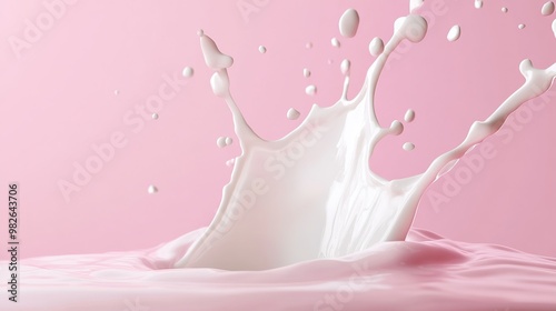 Stylish 3D Rendered Pink Milk Splash on a Clean Vector Background for Fresh Milk Products. Dynamic Dairy Advertising Display