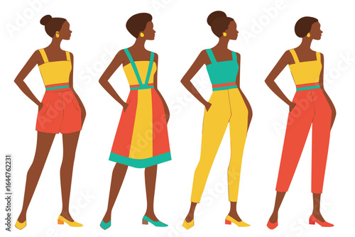 Stylish African American Women in Colorful Fashion Outfits Summer Style Illustration