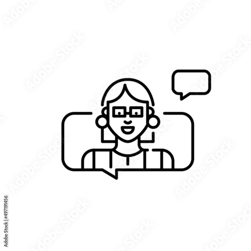 Stylish and professional young girl chatting. Pixel perfect, editable stroke minimal line icon