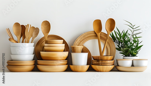 stylish arrangement of bamboo kitchenware and utensils, showcasing sustainability and elegance