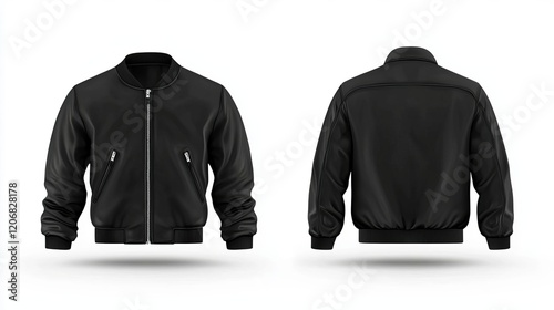 Stylish black bomber jacket showcased from the front and back angles, perfect for casual or sporty outfits.