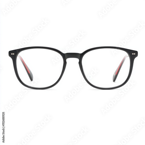 Stylish black eyeglasses displayed on white background product photography minimalist design eye care concept, isolated on white background
