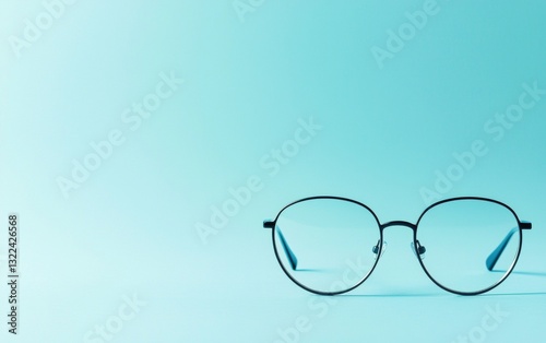 Stylish black glasses on a minimalistic pastel blue background highlighting modern eyewear design