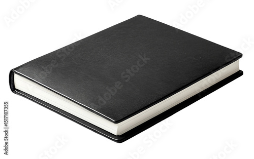 Stylish black hardcover notebook with simple minimalist aesthetic ideal for note-taking and journaling isolated on transparent background PNG