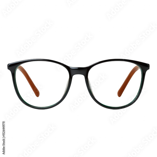 Stylish black sunglasses with wooden accents on the temples, perfect for a trendy summer look. Isolated on a white background.