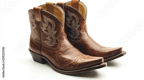 Stylish Brown Leather Cowboy Boots with Intricate Stitching Design