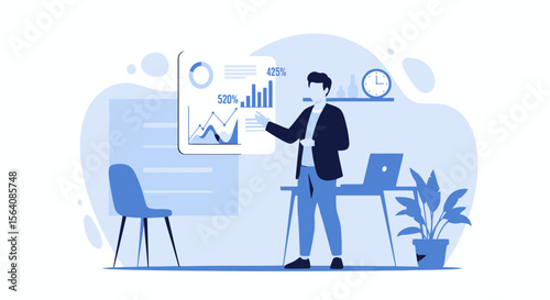 Stylish Businessman Presenting Financial Data With Graph At Workplace Illustration