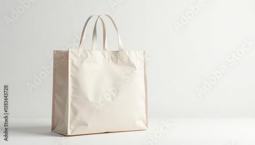 Stylish canvas shopping bag, clean white backdrop, reusable bag, style