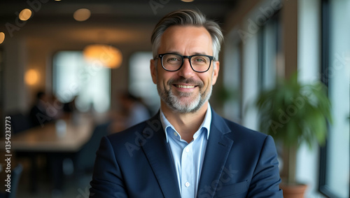 Stylish CEO Headshot: Confident Businessman in Elegant Office
