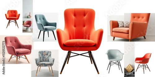 Stylish chair collage, various modern designs on white , accent chair, chair styles