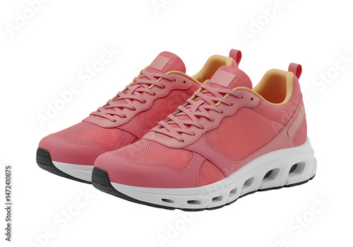 Stylish Coral Pink Knit Sneakers Womens Fashion Footwear isolated on transparent background