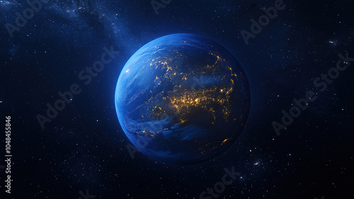 Stylish depiction of the planet at night highlighting its global connectivity