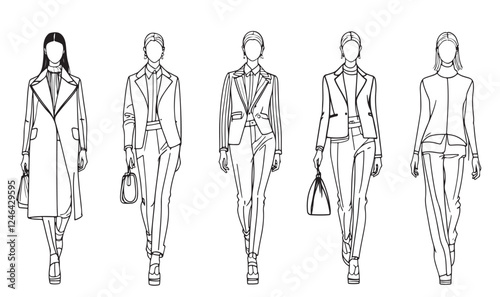 Stylish fashion models. Abstract Fashion girls Sketch. Woman in pants