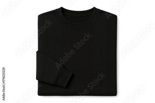 Stylish folded black crewneck sweatshirt isolated on transparent background.