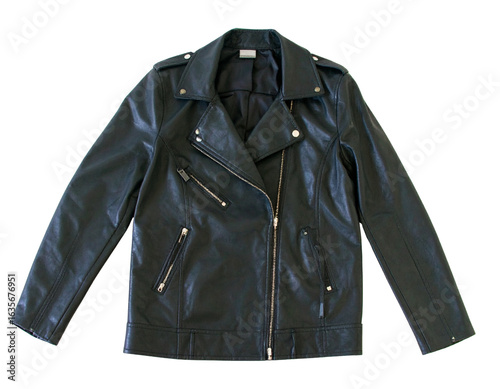 Stylish Folded Moto Jacket in Black Leather with Metal Zips PNG